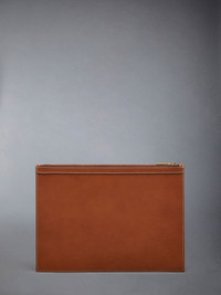 DETAILS & FIT Medium document holder in brown vacchetta leather. Brass zip top closure. White contrast stitching. Gold foil printed logo at entry. Striped lining. Signature striped grosgrain loop tab at entry. 100% Calf Leather Lining: 100% Polyester Made in Italy MAC021LL0044255 - Length: 35.0cm - WIDTH: 25.0cm