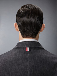 DETAILS & FIT Tailored to perfection, our Washed Denim Contrast Topstitching Unconstructed Classic Sport Coat will effortlessly elevate any dress shirt or sweater. Pair it with our Washed Denim Contrast Topstitching Unconstructed Single Welt Pocket Trouser to leave a lasting impression. Front button closure 2 Flap pockets Single chest pocket Button cuffs with signature striped grosgrain trim Signature striped grosgrain loop tab Model is 6' 1" (185cm), wearing size 0 100% Cotton Lining: 100% Cupro Made in Italy MJU426D-03028-001