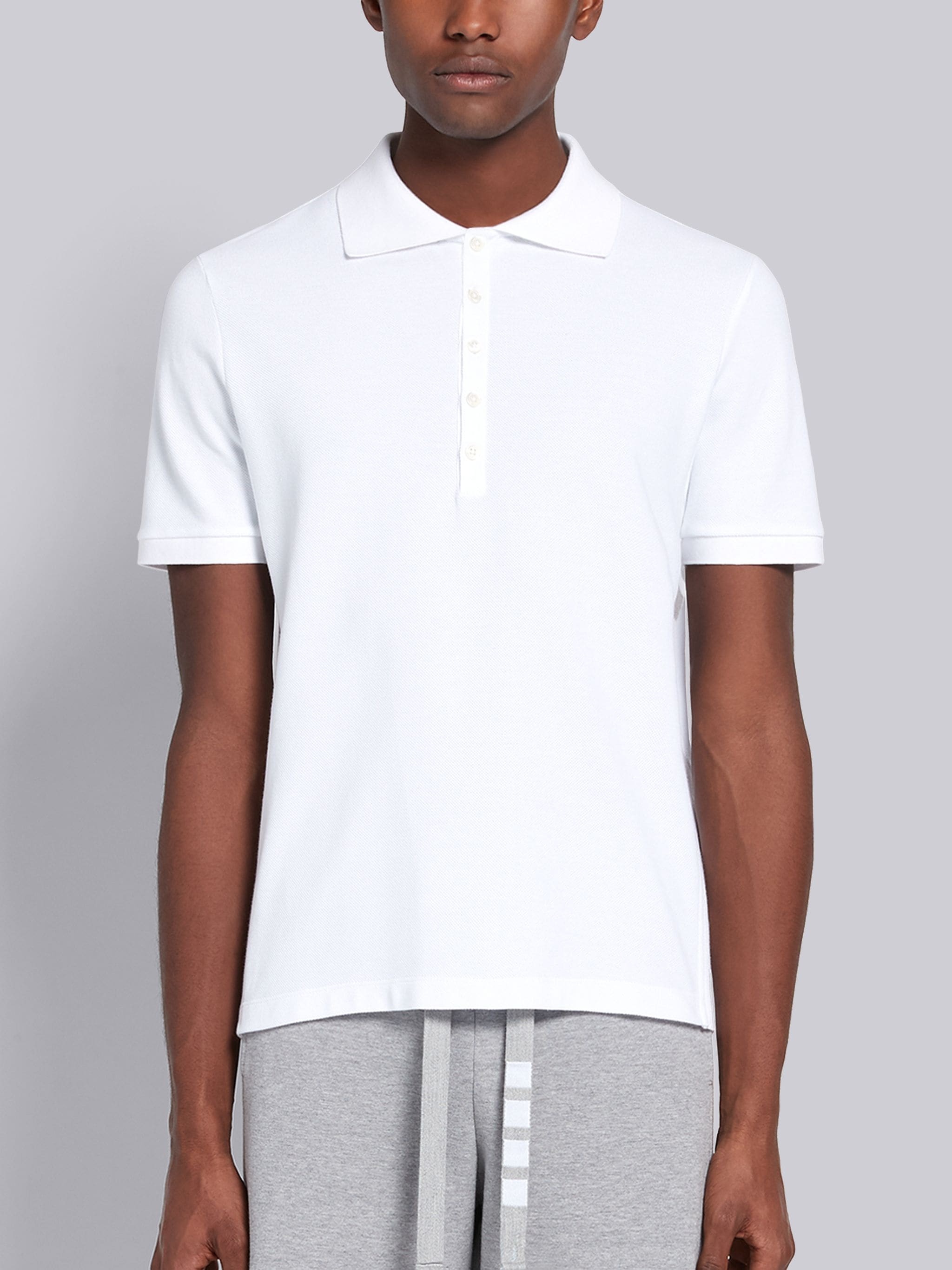 White Classic Cotton Pique Side Insert 4-Bar Polo