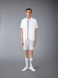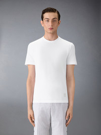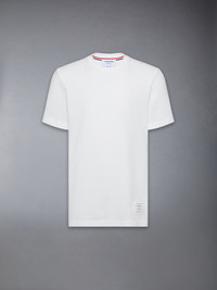 DETAILS & FIT A silhouette that has stood the test of time, our Classic Pique 4-Bar Tee is adorned with signature Thom Browne emblems throughout, and tailored to perfection. Crew neckline 4-bar stripe detail at left side Name tag applique above hem Signature striped grosgrain loop tab at back of neck Model is 6' 1" (185cm), wearing size 0 100% Cotton Made in Italy MJS123A-00050-100