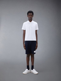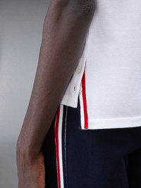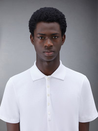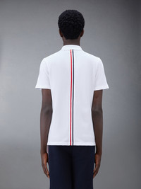White Cotton Pique Center Back Stripe Relaxed Fit Polo