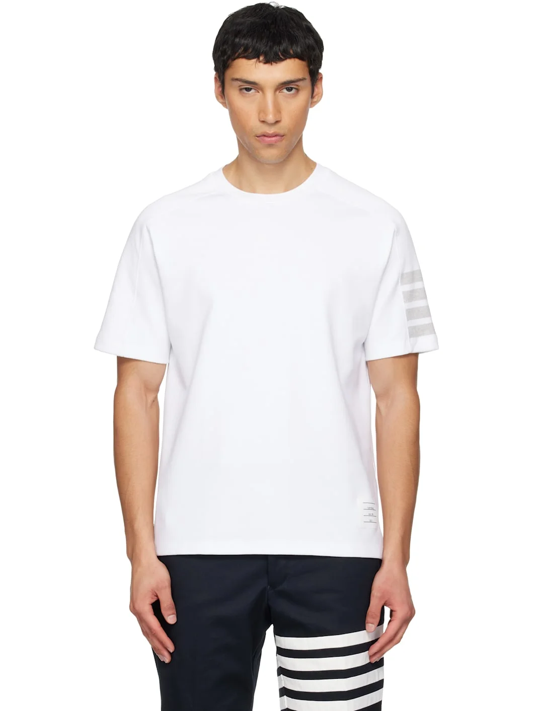 Cotton milano jersey T-shirt. · Rib-knit crewneck and raglan sleeves · Jacron logo patch at hem · Tennis-tail hem · Saddle shoulders · Stripes at sleeve · Grosgrain loop at back collar Supplier color: White 100% cotton. Made in Japan 261381M213006