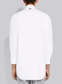 DETAILS & FIT Oversized shirt in white satin weave Oxford with tonal 4-bar stripe detail at left sleeve. Front button closure, patch chest pocket, name tag applique above shirttail hem. Pleated back yoke with locker loop. Signature striped grosgrain loop tab at back of neck. Model is 6' 1" (185mm), wearing size 0. 100% Supima Cotton Made in Italy MWL329A06496100