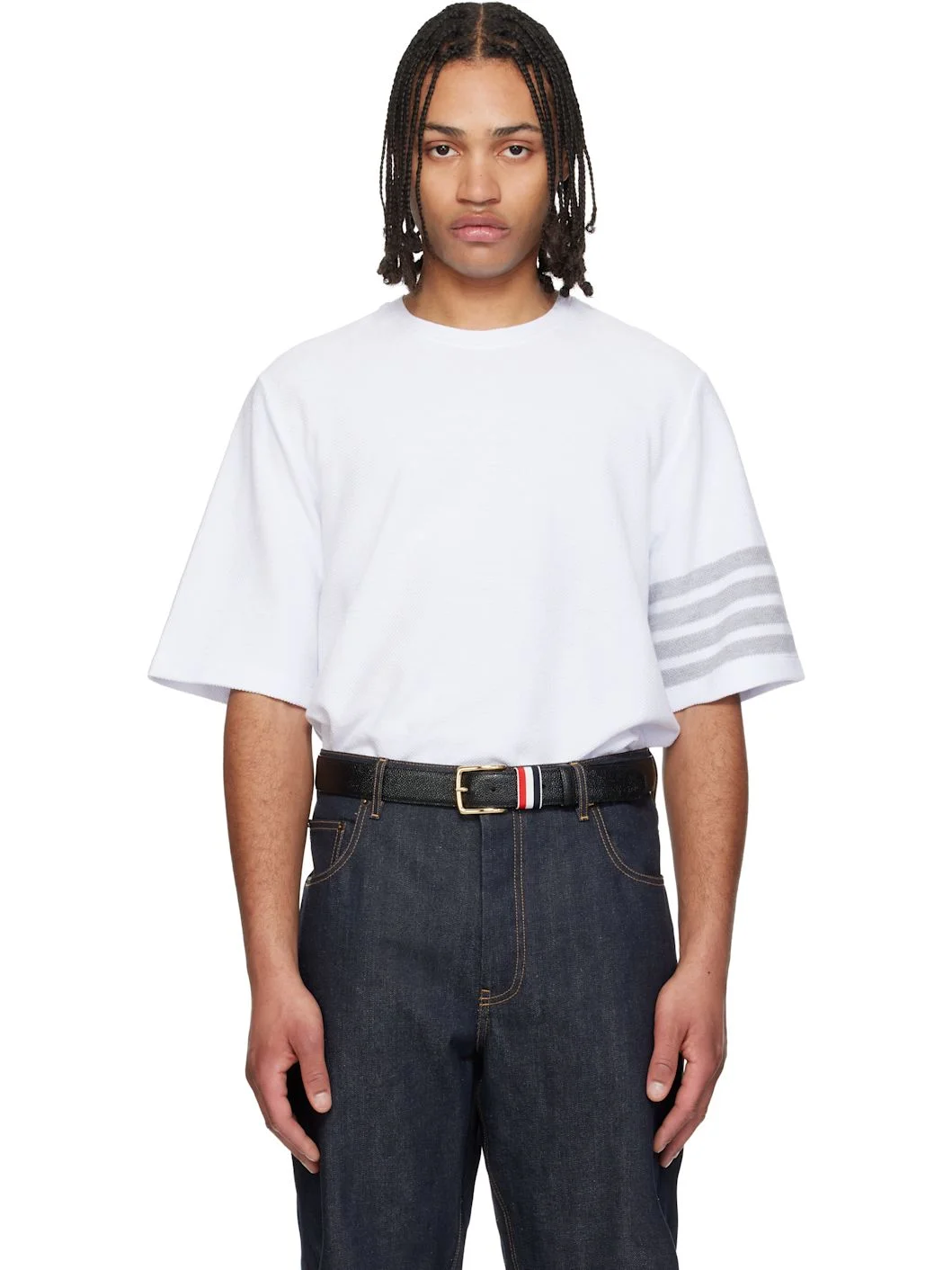Cotton pique T-shirt. · Rib-knit crewneck · Logo patch at front hem · Button vent at side seams · Stripes at sleeve Supplier color: White Body: 100% cotton. Trim: 90% cotton, 10% elastane. Made in Italy 261381M213016