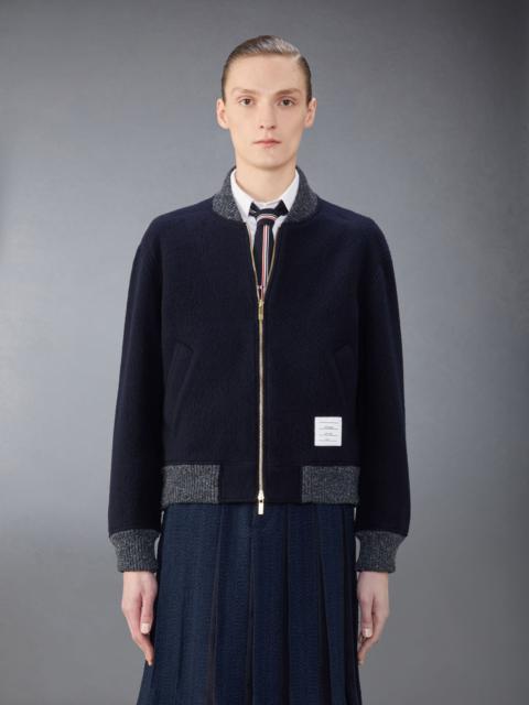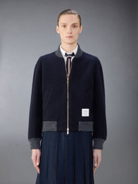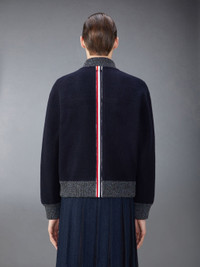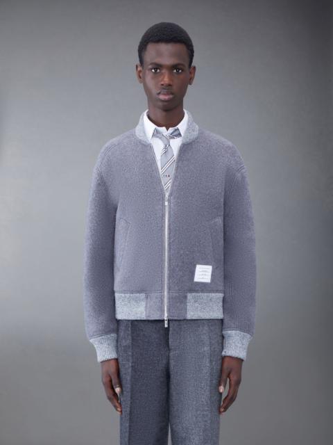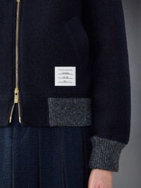 DETAILS & FIT The pinnacle of cold-weather sophistication — our Wool Fleece Bomber Jacket. Signature Thom Browne emblems put a twist on fine outerwear. Front zip closure Name tag applique Signature striped grosgrain trim at back Signature striped grosgrain loop tab Model is 6' 1" (185cm), wearing size 1 100% Wool Made in Italy MJT395A-J0100-415 - CHEST: 114.0cm - Length: 61.0cm - WAIST: 108.0cm - SLEEVE LENGTH: 61.0cm