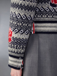 DETAILS & FIT An intricate cardigan that exudes elegance and sophistication. Whimsical roses and a single raven pay homage to Edgar Allan Poe, whose poem "The Raven" served as inspiration for the Fall/Winter 2024 collection. Like Poe's works, this garment demands a closer look, ever-revealing unexpected juxtapositions and details that defy expectations. Layer this cardigan over a dress shirt or tee on cool fall days and nights. V neckline Front button closure with striped grosgrain placket Buttoned cuffs with signature striped grosgrain trim Buttoned side vents with signature striped grosgrain trim Signature striped grosgrain loop tab Model is 6' 1" (185cm), wearing size 1 90%Wool, 10% Mohair Made in Italy MKC554A-Y1026-998