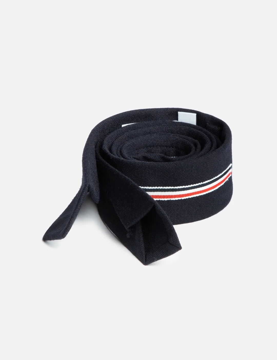 - Thom Browne - Wool Suiting Classic Tie - Made with fine virgin wool - Striped grosgrain trim at interior - Color: Navy - Material: 100% Wool - See more Ties and Accessories SIZING Approximate measurement: - Width: 5.5cm - Length: 142cm