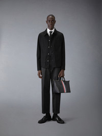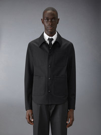 DETAILS & FIT A weighted layer perfect for cool spring nights, this one-of-a-kind utility jacket strikes the balance between refined suiting and casual wear. Crafted in fine wool twill fabric. Front button closure 3 Front patch pockets Interior pocket with name tag Signature striped grosgrain loop tab Model is 6'1" (185cm), wearing size 1 100% Virgin Wool Lining: 100% Cupro Made in Italy MJO220U-F0776-001