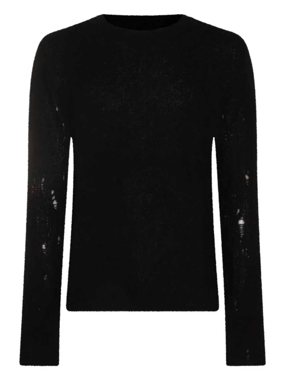 distressed long-sleeve sweater Highlights - Black - Wool blend - Long sleeves - Crew neck - Distressed detailing Imported Composition Alpaca 89%, Polyamide 11% Washing instructions Read Manufacturer Guidelines