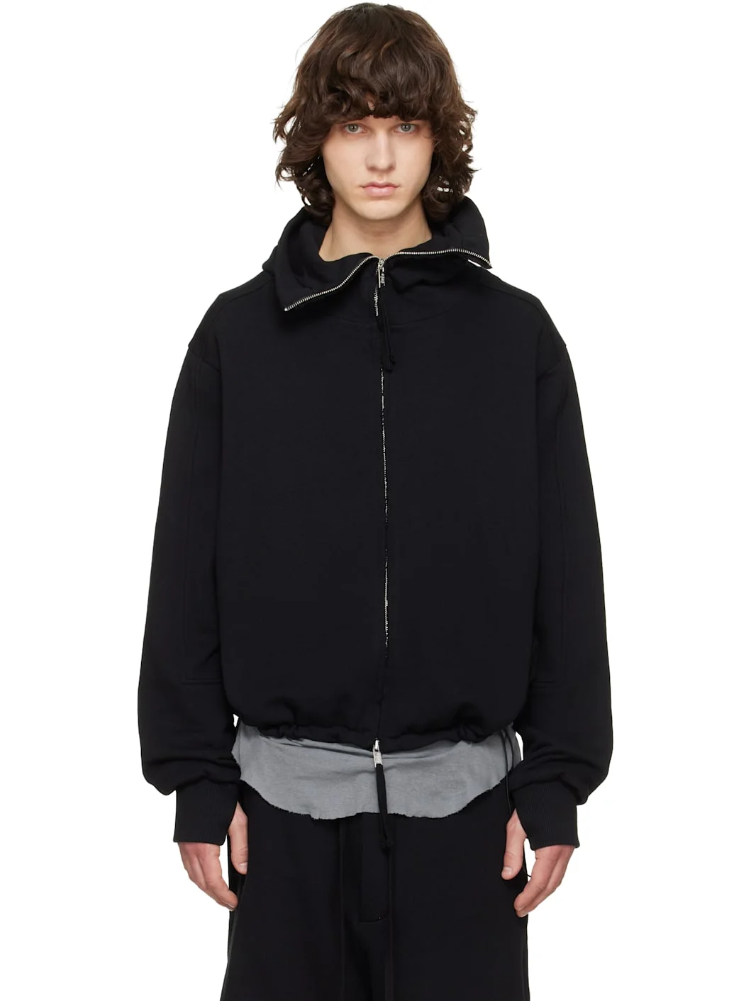 Cotton jersey hoodie. · Hood at funnel neck · Two-way zip closure · Seam pockets · Bungee-style drawstring at hem · Rib-knit cuffs · Fully lined Supplier color: Black Body: 100% cotton. Trim: 95% cotton, 5% elastane. Lining: 100% cotton. Made in Turkey 261974M202000