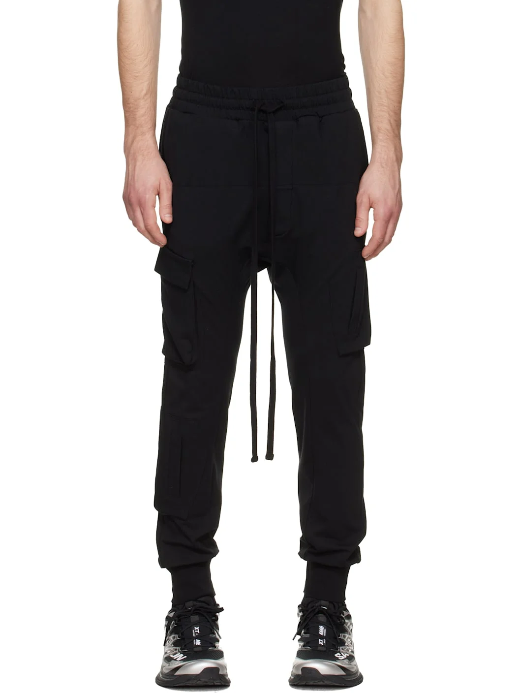 Stretch cotton jersey and waffle-knit cotton cargo pants. · Drawstring at elasticized waistband · Four-pocket styling · Button fly · Rib-knit cuffs · Cargo pocket and welt pocket at outseams Supplier color: Black Body: 94% cotton, 6% elastane. Trim 1: 100% cotton. Trim 2: 95% cotton, 5% elastane. Made in Turkey 261974M188000