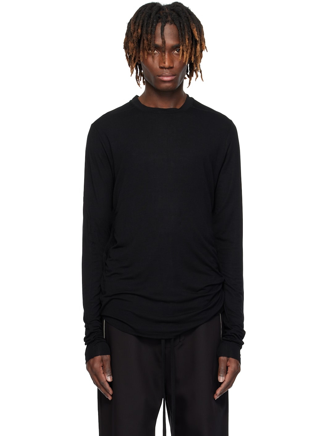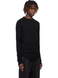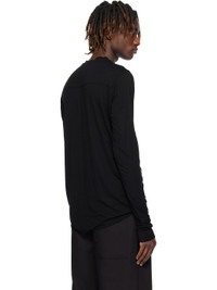 Slim-fit stretch viscose jersey T-shirt. - Rib-knit crewneck - Raw edge at curved hem and cuffs - Saddle shoulders - Curved seams at sleeves - Central seam at back yoke Supplier color: Black