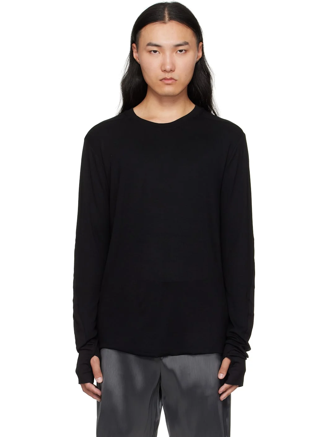 Lyocell jersey T-shirt. · Rib-knit crewneck · Raw edge at hem and cuffs · Thumbhole at cuffs · Logo embroidered at back Supplier color: Black Body: 100% lyocell. Trim 1: 100% cotton. Trim 2: 95% cotton, 5% elastane. Made in Turkey 252974M213024
