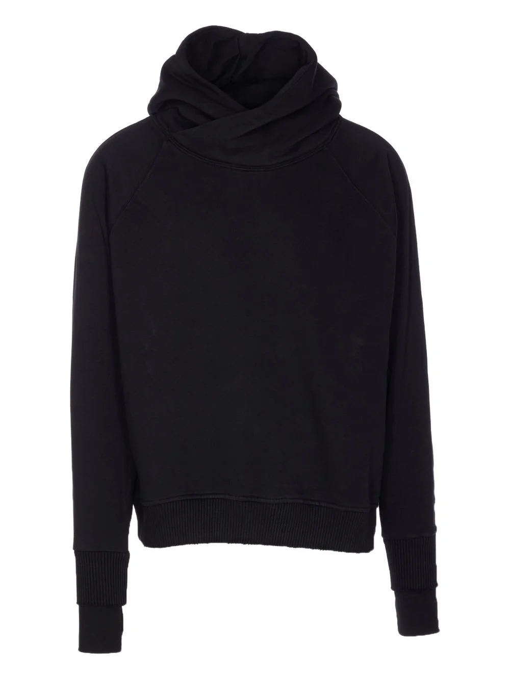 draped hooded sweater Highlights - Black - Draped hood - Raglan sleeves - Ribbed cuffs - Ribbed hem - Cotton blend Imported Composition Cotton 88%, Polyester 12% Washing instructions Read Manufacturer Guidelines