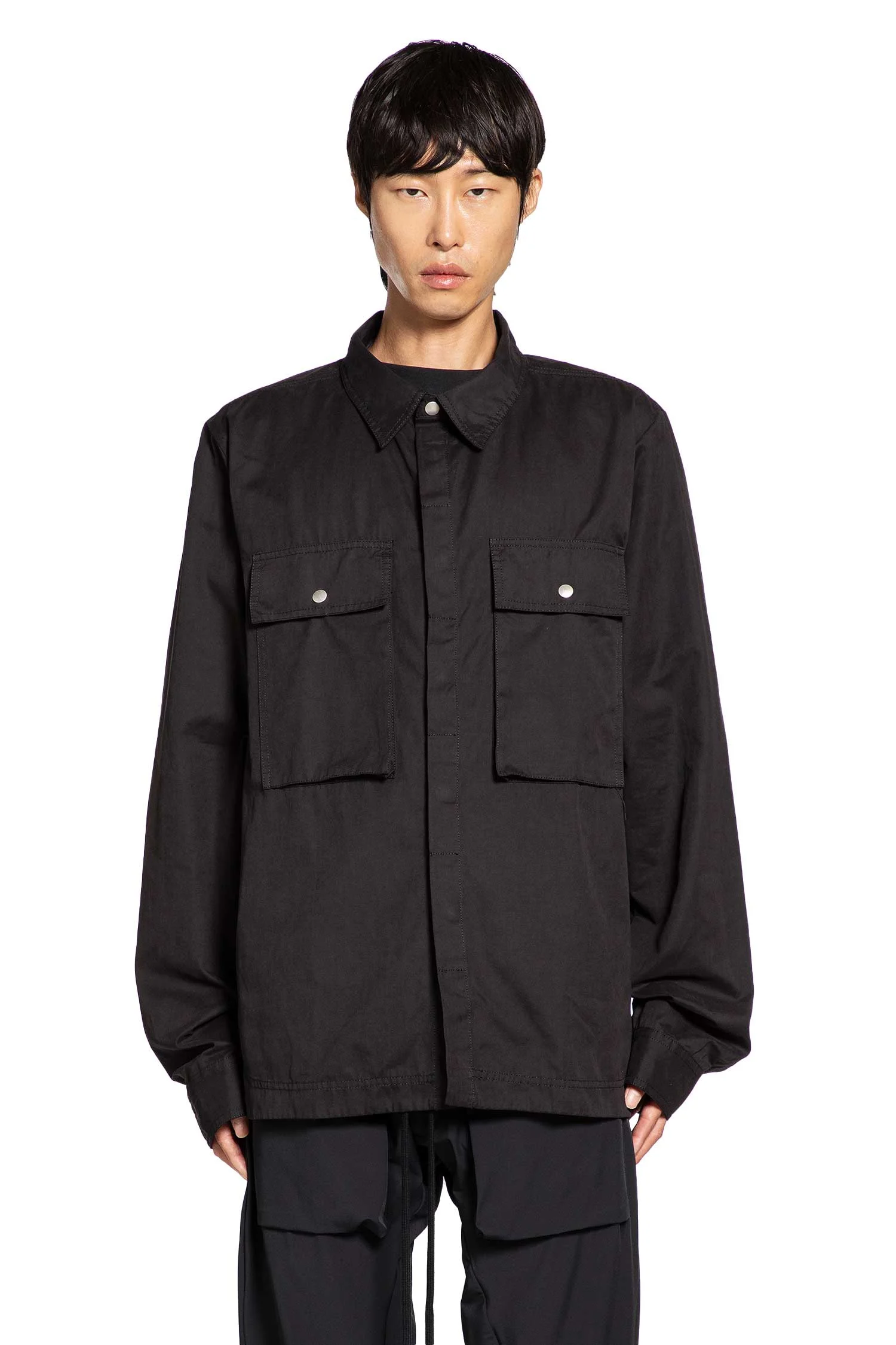 DESCRIPTION - Black - Cotton nylon canvas - Classic collar - Concealed press stud closure - Press stud flap chest pockets - Dropped shoulders - Long sleeves - Press stud cuffs DETAILS - Made in: Portugal - Composition: 38% Cotton 52% Polyester 10% Polyamide - Model code: MH175 BLACK - Item ID: 9793450606934 SIZE & FIT Model wears size M Model Height 188 cm Chest 88 cm Waist 69 cm Hips 88 cm