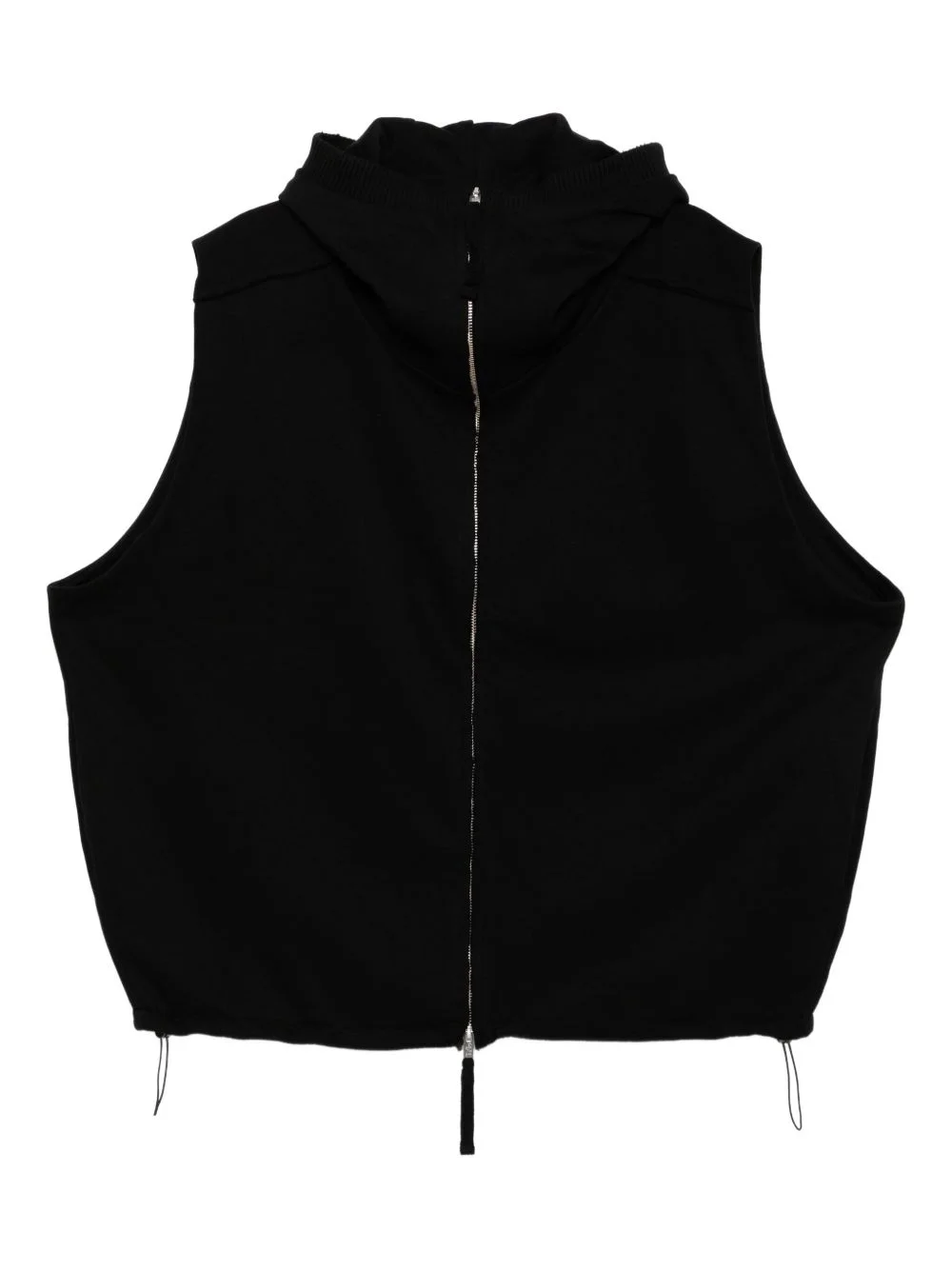 cotton sleeveless jacket Highlights - Black - Front zip fastening - Two side seam pockets - Drawstring hem Imported Composition Cotton 100% SIZE & FIT Model measurements Height 6 ft 2 in(1.87 m) Bust/Chest 33.07 in(84 cm) Hips 35.43 in(90 cm) Waist 26.77 in(68 cm) FittingInformation Designed for a relaxed fit, this piece allows for comfort and movement when worn The internal drawstring at the hem allows for fitted preferences Made from a midweight non-stretch fabric, this piece offers minimal elasticity when worn Washing instructions Machine Wash