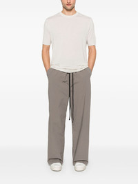 crew-neck T-shirt Highlights - Light beige - Short sleeves - Raw-cut hem Imported Composition Viscose 94%, Elastane 6% SIZE & FIT Model measurements Height 6 ft 2 in(1.87 m) Bust/Chest 37.79 in(96 cm) Hips 37.79 in(96 cm) Waist 30.31 in(77 cm) FittingInformation Designed for a relaxed fit, this piece allows for comfort and movement when worn Made with a lightweight knit, this piece offers some stretch Washing instructions Machine Wash