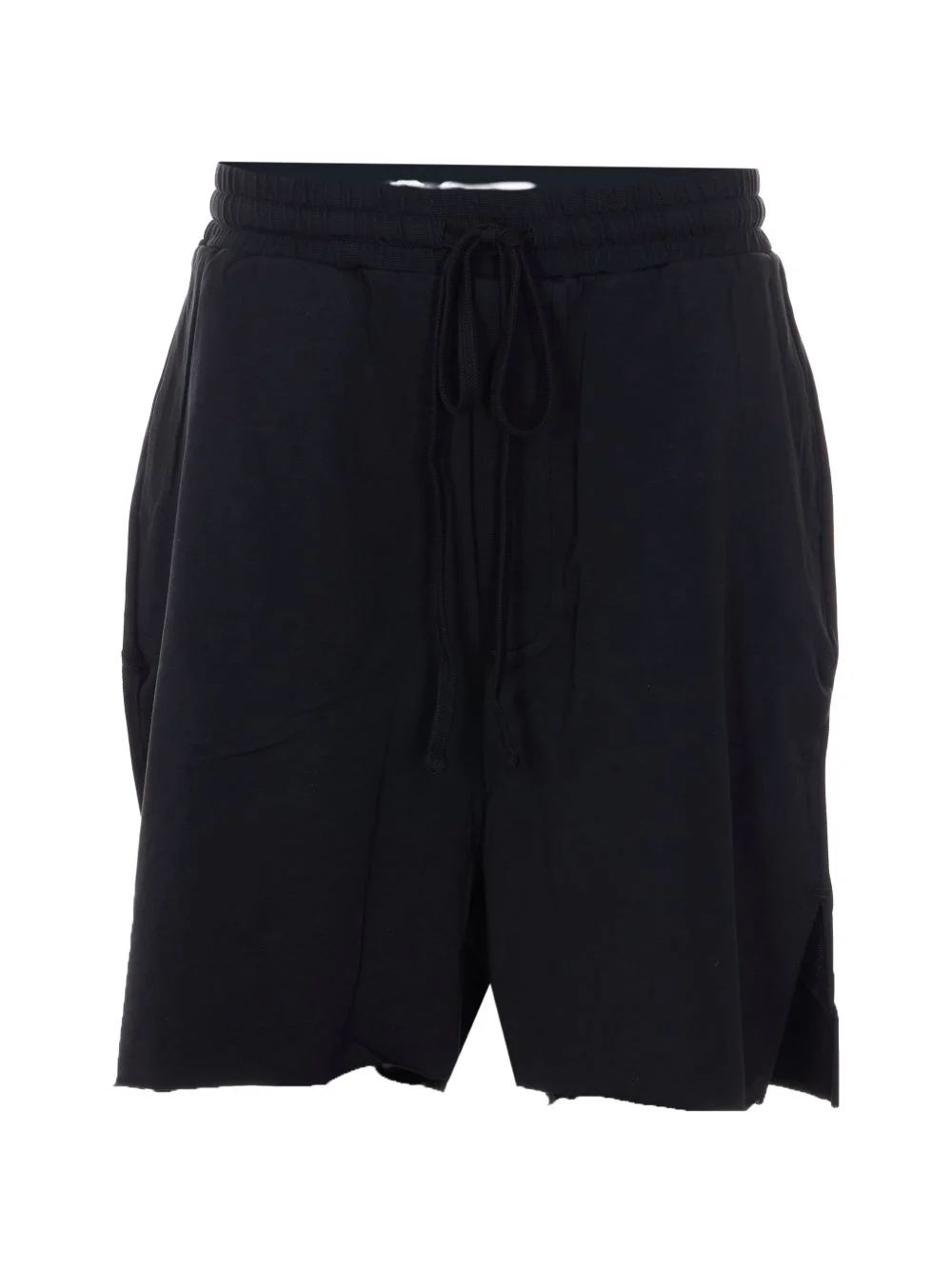 elasticated drawstring shorts Highlights - Black - Elasticated waistband - Drawstring fastening - Lateral pockets - Raw hem Imported Composition Cotton 100% Washing instructions Read Manufacturer Guidelines