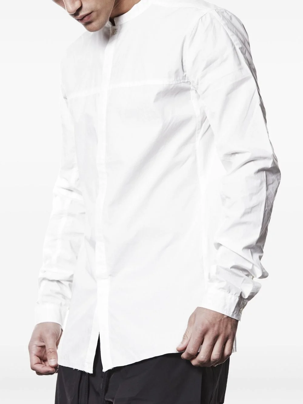 Mandarin-collar long-sleeve shirt Highlights - White - Mandarin collar - Long sleeves - Front button fastening - Panelled design - Straight hemline Imported Composition Organic Cotton 100% Washing instructions Read Manufacturer Guidelines