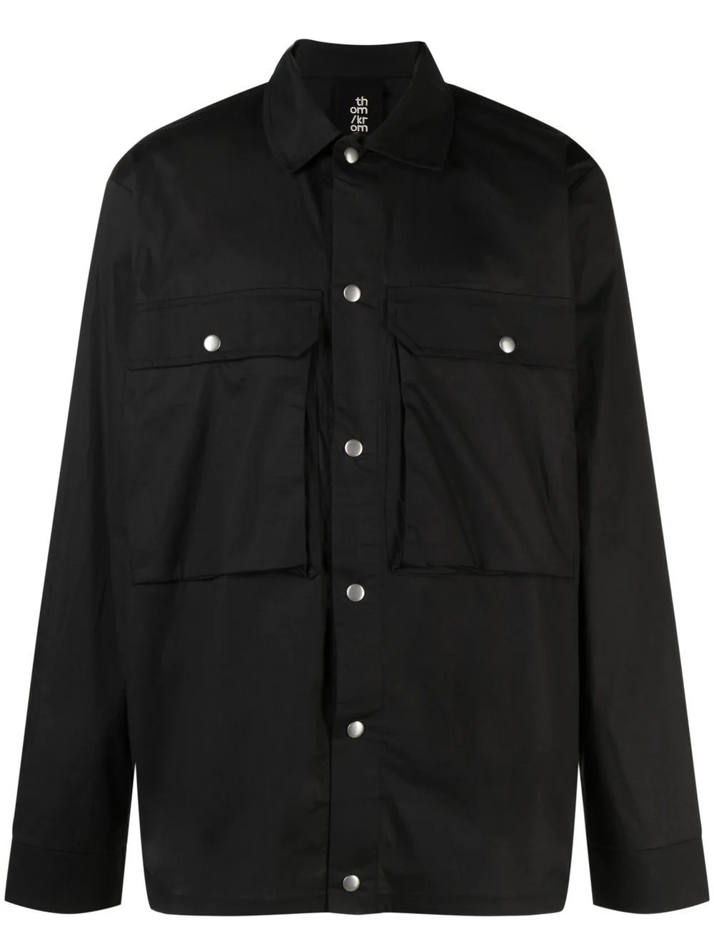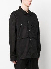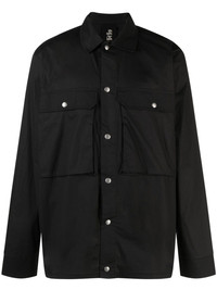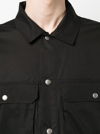 long-sleeved press-stud shirt black stretch-cotton classic collar front press-stud fastening long sleeves press-stud fastening cuffs two press-stud fastening chest pockets straight hem Imported Composition Cotton 97%, Spandex/Elastane 3% SIZE & FIT Model measurements Height 6 ft 1 in(1.86 m) Bust/Chest 37.4 in(95 cm) Hips 36.22 in(92 cm) Waist 29.52 in(75 cm) FittingInformation This piece fits true to size. We recommend you get your regular size Cut for a loose fit Made with a mid-weight stretch fabric