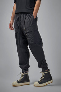 - elastic waist - cargo pockets - elastic cuffs Materials: 100% nylon Color: black SKU: 151429 Brand style: M P 26 Size and Fit The model is 1.89m (6.2ft) and wears a size L. The item has a looser cut but is not necessarily oversized. It’s intended for a comfortable and easy wear.