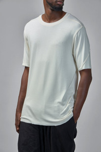 T-shirt in a creamy off-white shade with a relaxed, longline fit. It features a crew neckline, short sleeves, exposed seam construction across the back and lightweight jersey fabric with side hem slits. Materials: 95% Viscose, 5% Elastane Color: oat SKU: 151702 Brand style: M TS 890 Size and Fit The model is 1.89m (6.2ft) and wears a size L. The item fits as expected according to standard sizing. Order your usual size.