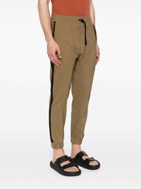 side-stripe track pants Highlights - Brown - Elasticated drawstring waistband - Two side welt pockets - Rear flap pocket - Elasticated ankles Imported Composition Viscose 75%, Nylon 20%, Elastane 5% SIZE & FIT Model measurements Height 6 ft 2 in(1.88 m) Bust/Chest 37.4 in(95 cm) Hips 38.58 in(98 cm) Waist 31.1 in(79 cm) FittingInformation Designed for a relaxed tapered leg, allowing a comfortable loose fit above the knee with a closer fit towards the calves The elasticated waist allows for a comfortable fit Made from a midweight stretch fabric, this piece offers elasticity and flexibility when worn