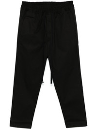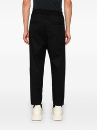 tapered trousers Highlights - Black - Cotton blend - Gabardine weave - Tapered leg - Elasticated drawstring waistband - Two side slit pockets - Two rear welt pockets - Straight hem Imported Composition Cotton 97%, Spandex/Elastane 3% SIZE & FIT Model measurements Height 6 ft 2 in(1.87 m) Bust/Chest 37.79 in(96 cm) Hips 37.79 in(96 cm) Waist 30.31 in(77 cm) FittingInformation Designed for a slim fit, offering a comfortable fit that sits just away from the leg Adjust this piece’s waistband to your preference using the drawstring Made from a midweight non-stretch fabric, this piece offers minimal elasticity when worn
