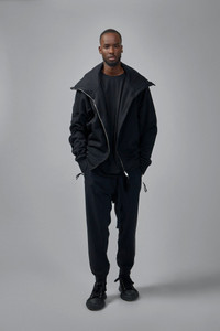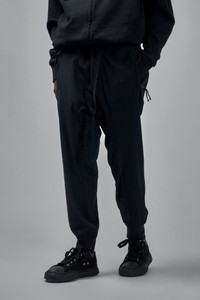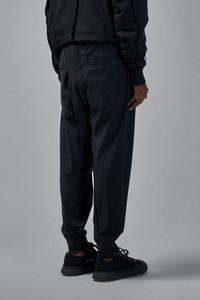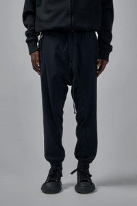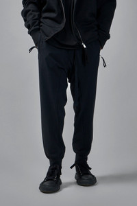 Track pants in black with a relaxed tapered silhouette. They feature a drawstring waistband, visible center-front seam detailing and elasticated ankle cuffs. Color: black SKU: 151431 Brand style: M P 29