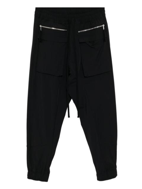MP27 trousers Highlights - Black - Elasticated waistband - Two side cargo pockets - Rear welt pocket - Rear cargo pocket Imported Composition Polyamide 85%, Elastane 15% SIZE & FIT Model measurements Height 6 ft 2 in(1.88 m) Bust/Chest 33.46 in(85 cm) Hips 36.22 in(92 cm) Waist 27.55 in(70 cm) FittingInformation Designed for a tapered leg, offering a loose unrestricted fit over the leg with a closer fit towards the ankle The elasticated hem at the ankle allows for movement and a comfortable fit Made from a midweight stretch fabric, this piece offers elasticity and flexibility when worn Washing instructions Machine Wash