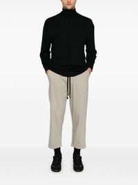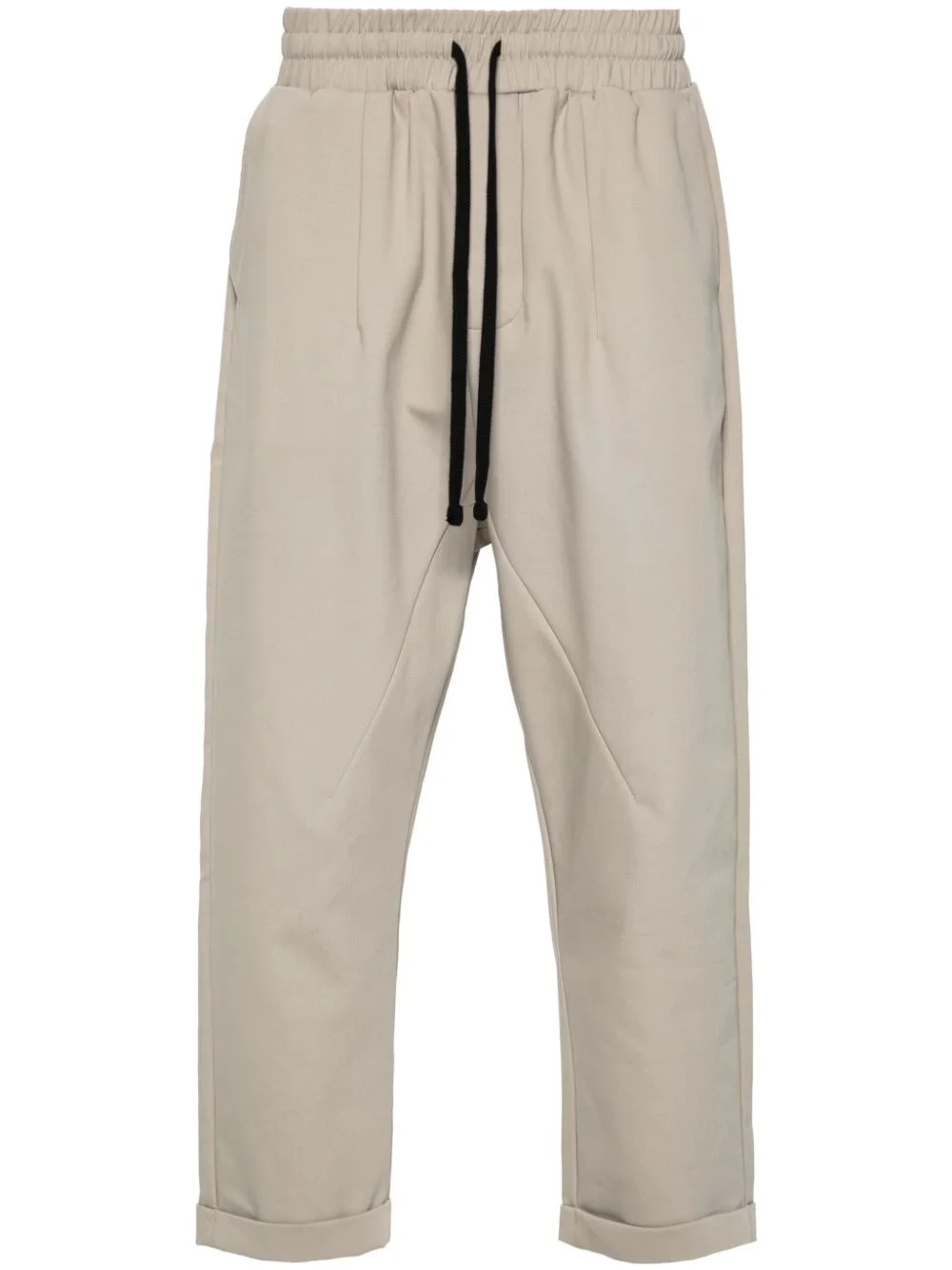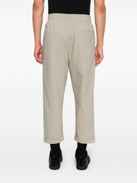 technical-jersey trousers Highlights - Light grey - Cotton blend - Interwoven design - Dart detailing - Elasticated drawstring waistband - Button fly fastening - Two diagonal pockets to the sides - Rear welt pocket - Cropped leg Imported Composition Cotton 51%, Polyamide 46%, Elastane 3% SIZE & FIT Model measurements Height 6 ft 2 in(1.87 m) Bust/Chest 37.79 in(96 cm) Hips 37.79 in(96 cm) Waist 30.31 in(77 cm) FittingInformation Designed for a tapered leg, offering a loose unrestricted fit over the leg with a closer fit towards the ankle Adjust this piece’s waistband to your preference using the drawstring Made from a midweight stretch fabric, this piece offers elasticity and flexibility when worn