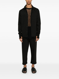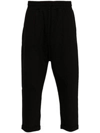 technical-jersey trousers Highlights - Black - Cotton blend - Technical jersey - Button fly fastening - Mid-rise - Elasticated drawstring waistband - Dart detailing - Two side slit pockets - Rear welt pocket - Tapered leg - Turn-up hem - Cropped leg Imported Composition Cotton 51%, Polyamide 46%, Elastane 3% SIZE & FIT Model measurements Height 6 ft 2 in(1.87 m) Bust/Chest 38.18 in(97 cm) Hips 36.61 in(93 cm) Waist 29.13 in(74 cm) FittingInformation Designed for a tapered leg, offering a loose unrestricted fit over the leg with a closer fit towards the ankle The elasticated waist allows for a comfortable fit Made from a midweight stretch fabric, this piece offers elasticity and flexibility when worn