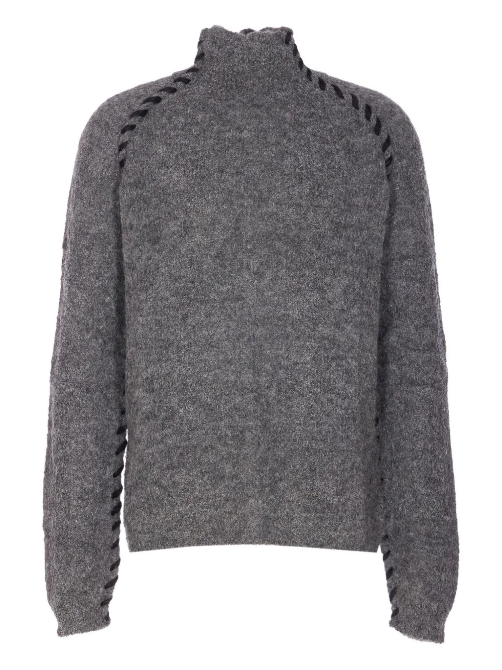 high-neck sweater Highlights - Grey - High neck - Long sleeves - Contrasting trim - Knitted construction Imported Composition Alpaca 89%, Polyamide 11% Washing instructions Dry Clean Only