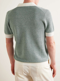 Thom Sweeney’s polo shirt has been knitted in Italy using a classic birdseye stitch. Designed for a slightly loose fit, it's made from a soft, lightweight cotton and linen-blend and features an open collar for a more relaxed look and feel. Size & Fit - Fits true to size. Take your normal size - Designed for a slightly loose fit - Lightweight knit - Model is shown wearing a M - Model measures: chest 38"/ 96cm, height 6'1"/ 185cm Details & Care - Emerald mélange and white cotton and linen-blend - 68% cotton, 32% linen - Machine wash