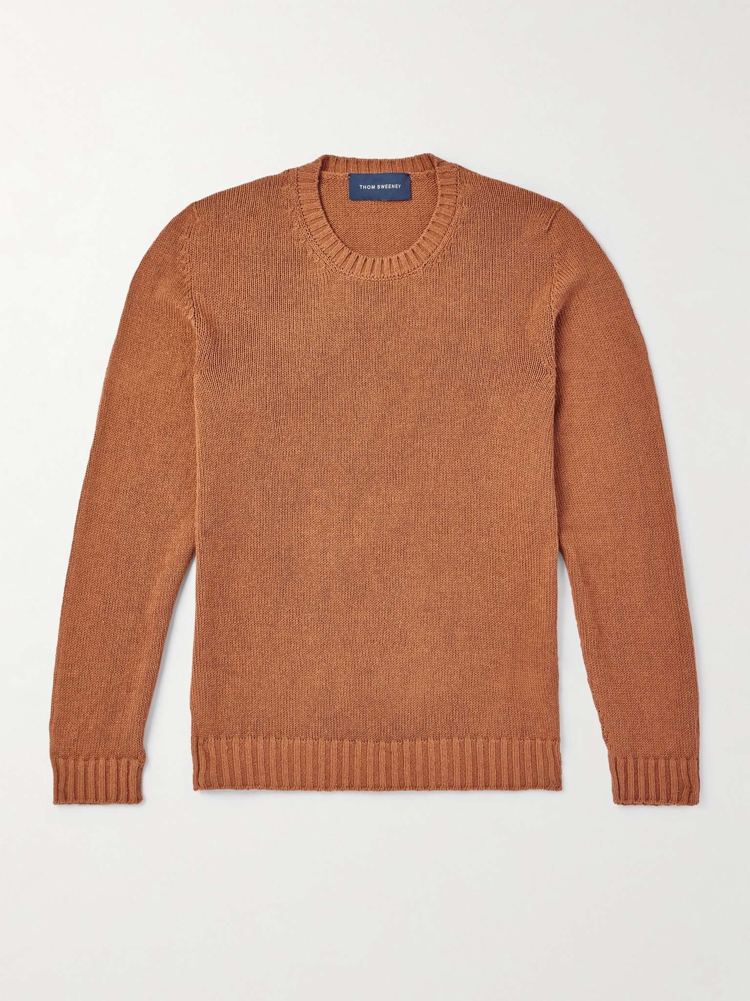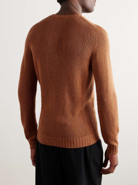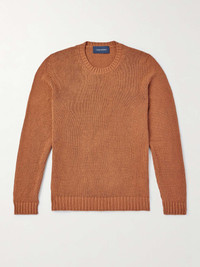 Thom Sweeney sources top-quality materials for everything from suits and shirts to accessories. This sweater is knitted from premium silk, which lets the air in and naturally regulates temperature. It has a slim fit defined by ribbed edges. Size & Fit - Fits true to size. Take your normal size - Designed for a slim fit - Mid-weight knit - Model is shown wearing a M - Model measures: chest 38"/ 96cm, height 6'2"/ 188cm Details & Care - Orange silk - 100% silk - Dry clean - Designer colour: Terracotta