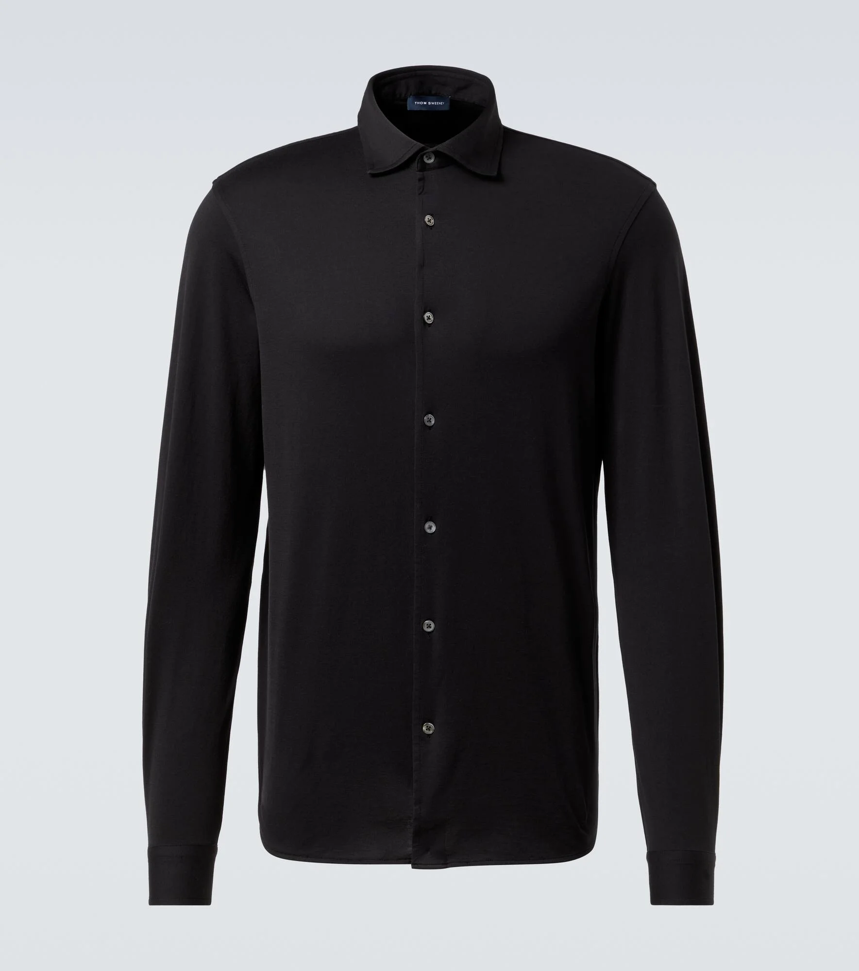 Founded by Savile Row-trained tailors, Thom Sweeney demonstrates exceptional craftsmanship and an uncomplicated British flair. A refined addition to your smart casual collection, this shirt is made from soft cotton jersey. The style is completed with buttoned cuffs and a soft collar that's designed to hold shape. Product Details - Material: 100% cotton - Care instructions: hand wash - Made in Italy - Designer color name: Black - Item color: black - Closure: buttoned front - Item number: P01034657 Size & Fit - True to size - Without pleats in the back - Slim fit - Non-stretchy fabric - Falls to the hip - The model in the picture is 185cm-6'1" and wearing a size L