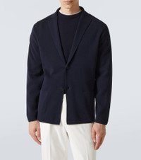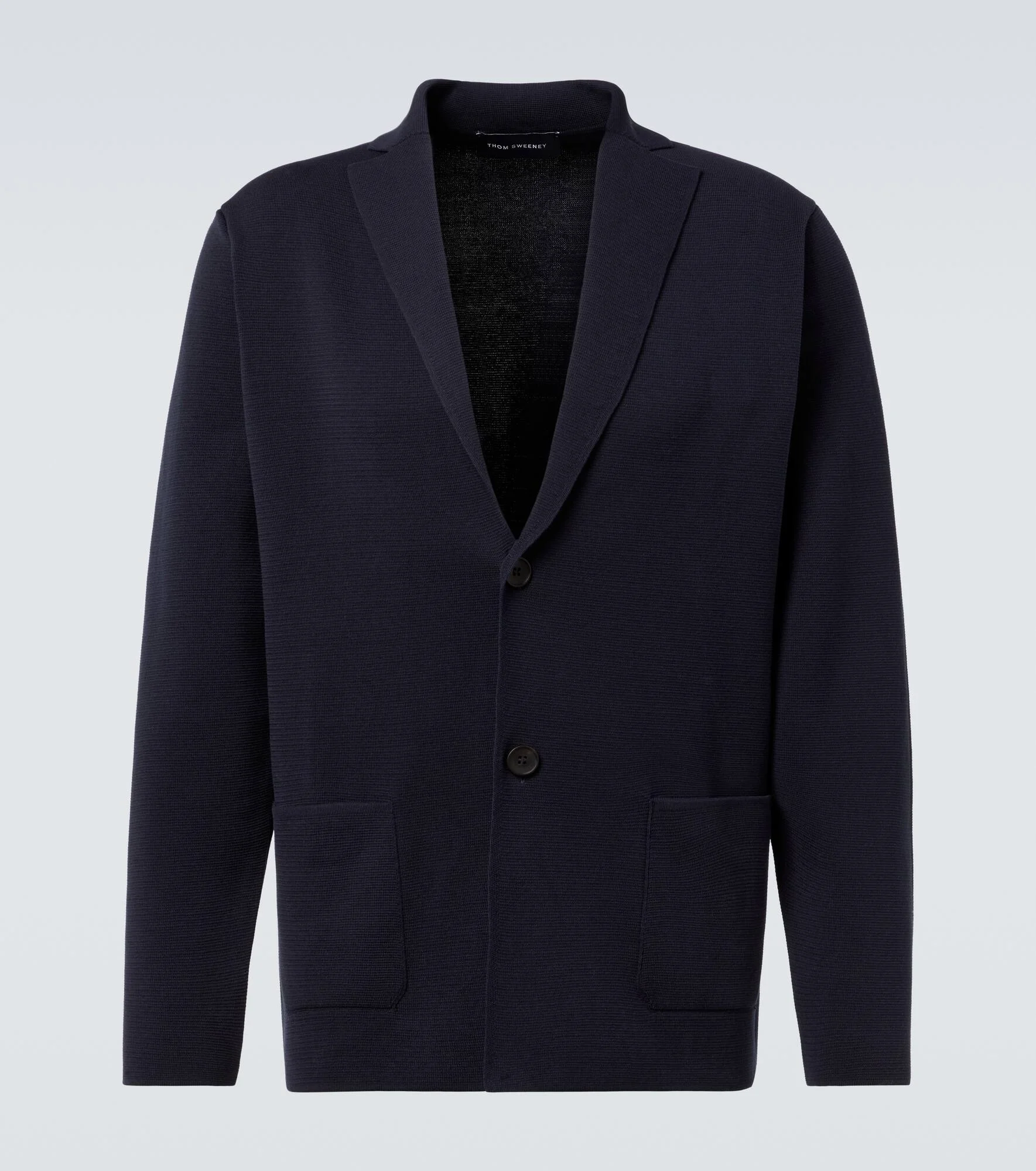 Founded by Savile Row-trained tailors, Thom Sweeney demonstrates exceptional craftsmanship and an uncomplicated British flair. The brand expands on its heritage with a contemporary knitted cotton crepe take on the classic blazer. Product Details - Material: 100% cotton - Care instructions: hand wash - Made in Italy - Designer color name: Navy - Item color: blue - Item number: P01034580 Size & Fit - True to size - For a looser fit, we recommend taking one size up - Straight fit - Slightly stretchy fabric - Falls below the hip - Height of model is 189cm-74.5" and wears a size L