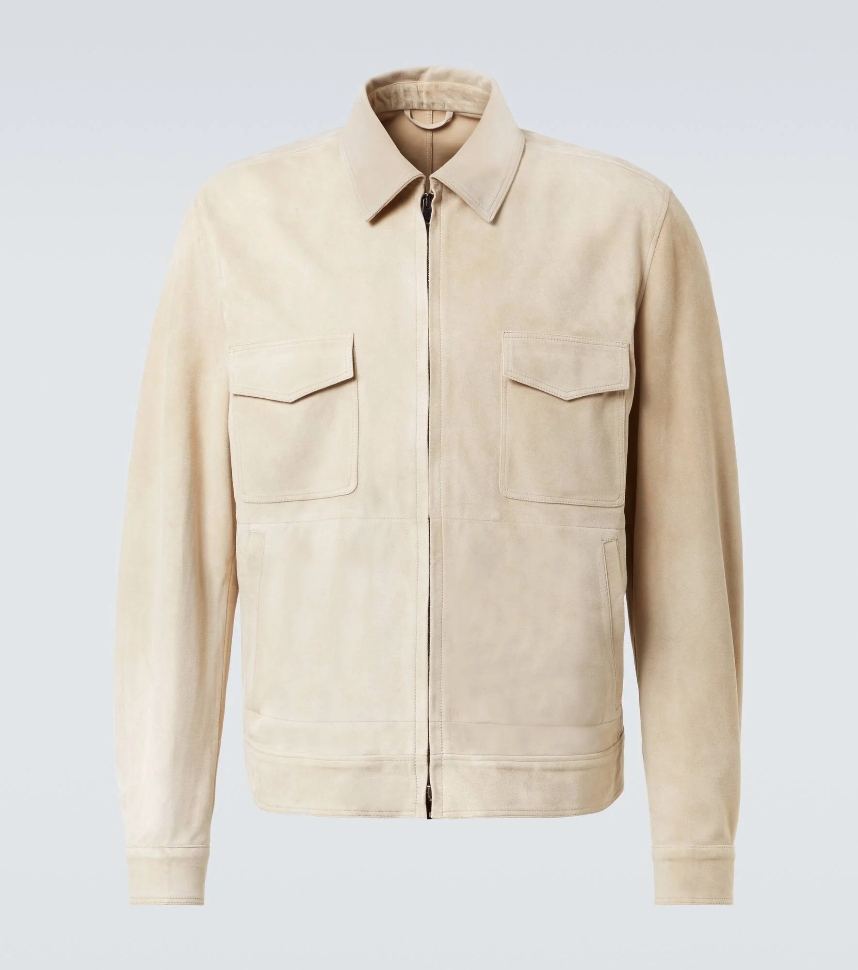 Crafted in Italy, this suede bomber jacket from Thom Sweeney offers a refined take on a classic silhouette. Designed with a zip-through front, it blends timeless style with understated luxury for effortless layering. Product Details - Material: 100% leather - Care instructions: specialist clean - Made in Italy - Designer color name: Beige - Item color: beige - Closure: two-way zipped front - Pockets: breast pockets, side slit pockets - Item number: P01034569 Size & Fit - True to size - Straight fit - Non-stretchy fabric - Slightly cropped - Height of model is 189cm-74.5" and wears a size L