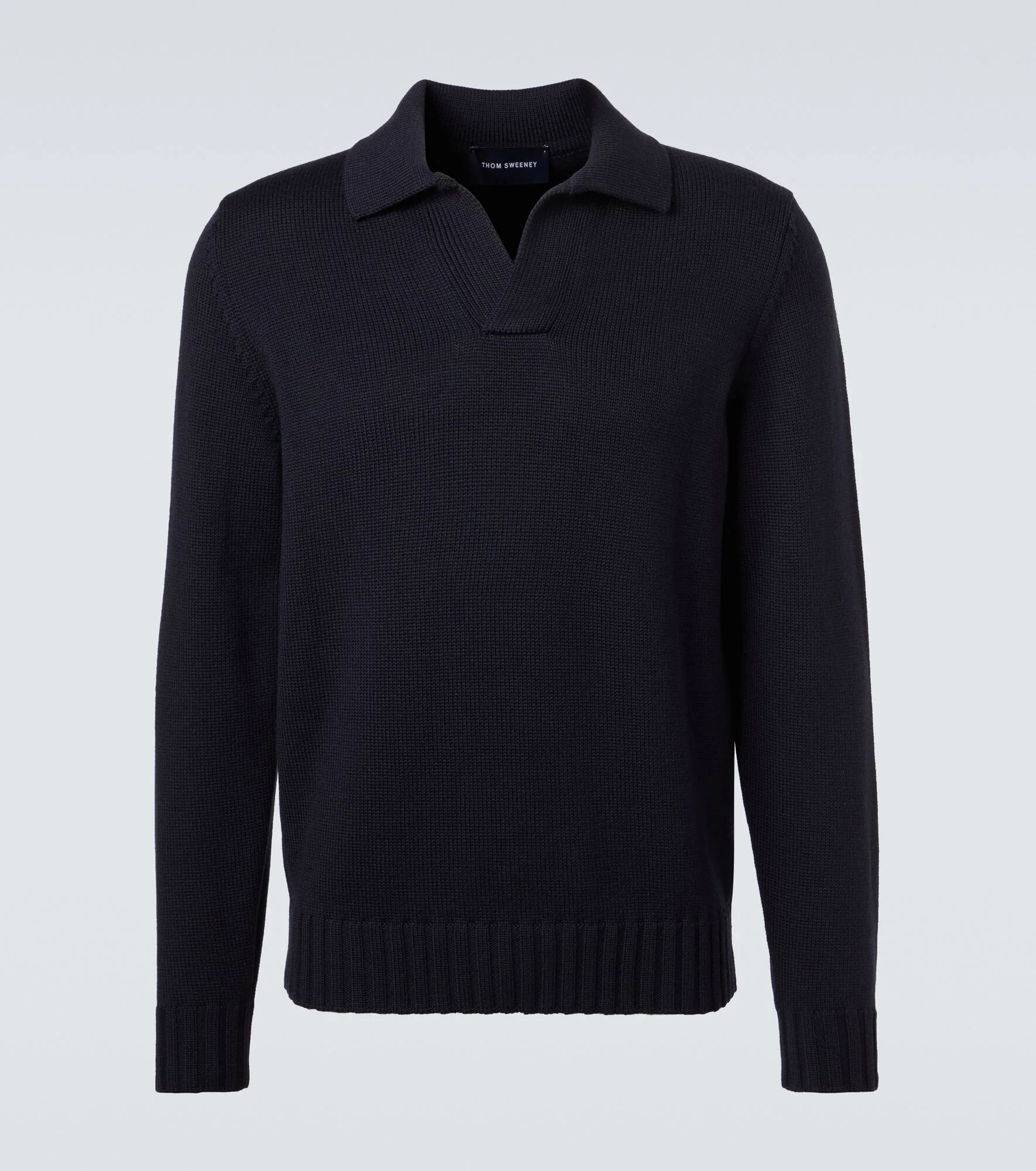 This sweater from Thom Sweeney makes for a polished addition to your everyday rotation. The style is knitted from Merino sheep's wool with ribbed trims and a polo collar. Product Details - Material: 100% wool (merino wool) - Care instructions: dry clean - Made in Italy - Designer color name: Dark Navy - Item color: blue - Collar: polo collar - Cuff: ribbed - Hem: ribbed - Item number: P01076515 Size & Fit - True to size - For a looser fit, we recommend taking one size up - Slim fit - Slightly stretchy fabric - Falls to the hip - The model in the picture is 185cm-6'1" and wearing a size L