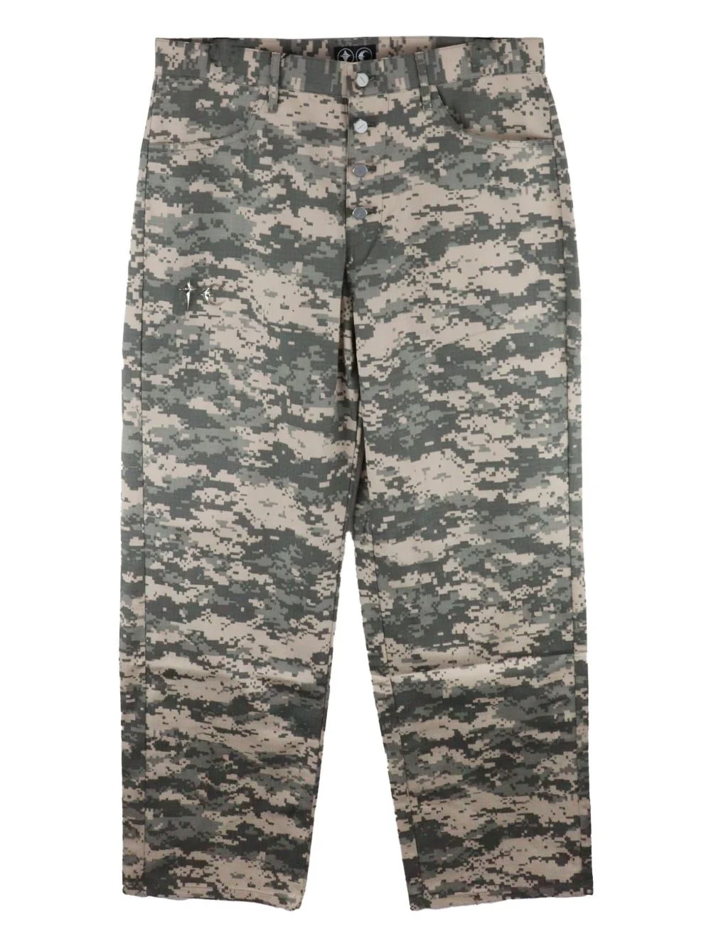camouflage-print trousers Highlights - Ash grey - Front button fastening - Two side slit pockets - Belt loops - Straight leg Imported Composition Cotton 100%