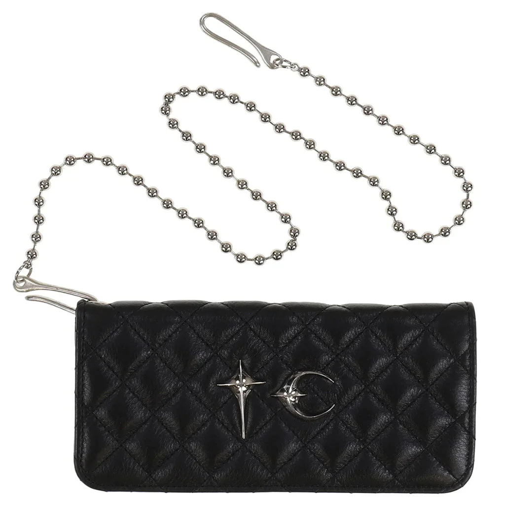 Carry your essentials in style with the Thug Club Chopper Quilted Long Wallet. Constructed from genuine cowhide leather, its compact silhouette is paired with a metal ball chain for added edge. Featuring a snap closure, the interior provides six card slots and zipper compartment with a custom zipper pull. The Thug Club emblem at the front completes the accessory. - 100% Cowhide Leather - Quilted pattern - Metal ball chain - Inner Thug Club zipper - Six card slots - Thug Club emblem - Style No: TC25AC2601