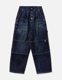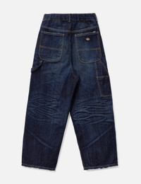 - THUG CLUB - Double Knee Denim Pants - Thug Club x Dickies collaborative collection - Washed cotton denim fabric - Elastic rear waist - Button closure - Two side pockets; two rear pockets - Two carpenter pockets and hammer loop at leg - Double knee details - Color: Blue - Country Of Origin: KR - Material: 100% Cotton - See more Pants and Clothing SIZING - Model wears size 2 - Model measures: Height 186cm, Chest 34”/86cm, Waist 28”/71cm, Hip 36”/91cm