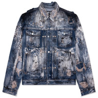 HARD-WASHED DAMAGED DENIM JACKET - BLUE
