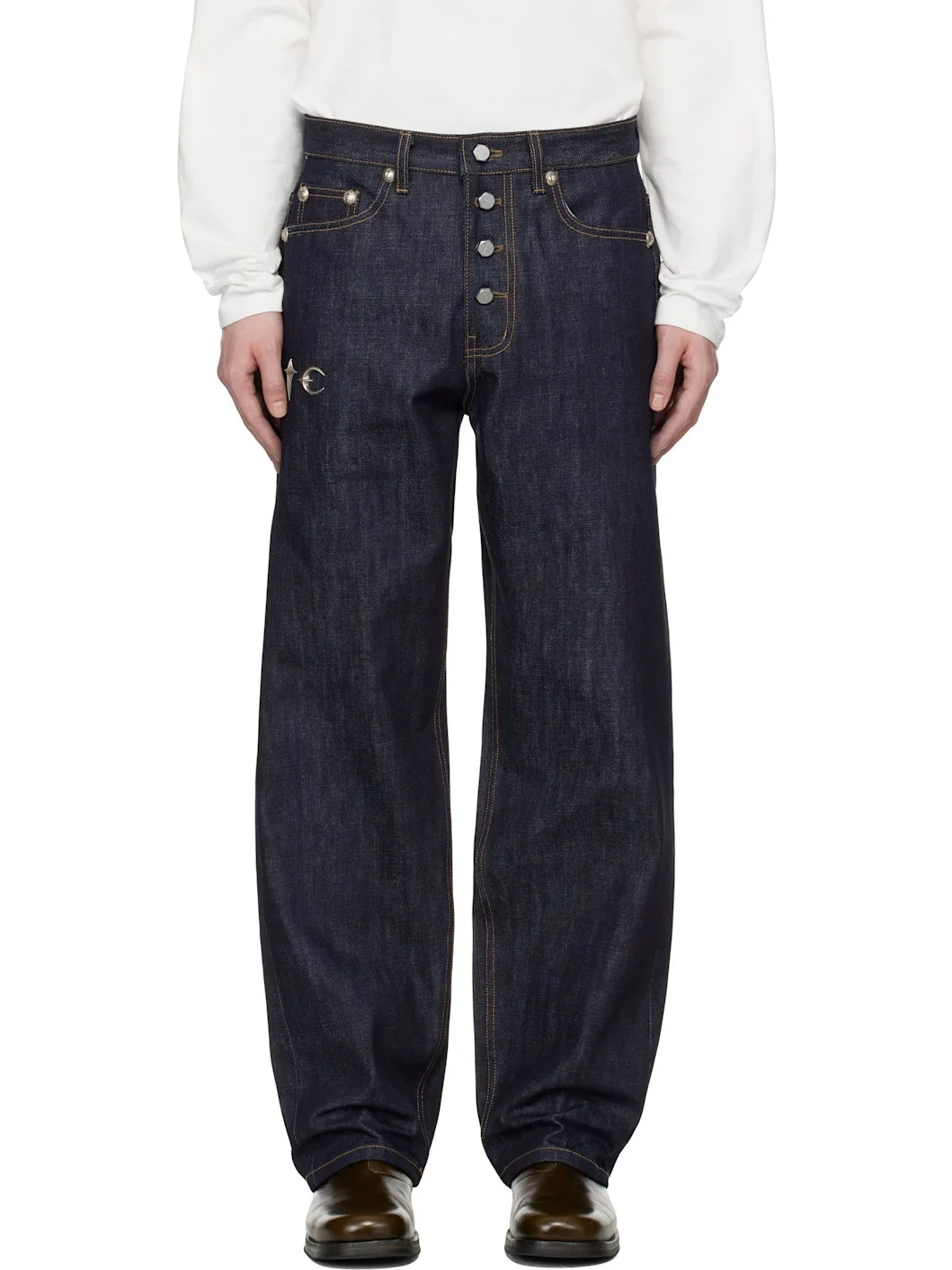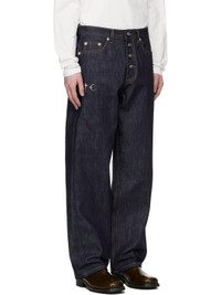Indigo-dyed non-stretch left-hand twill selvedge denim jeans. · Belt loops · Five-pocket styling · Button fly · Logo hardware at leg · Leather logo patch at back waistband · Logo graphic embroidered at back pockets · Logo-engraved antiqued silver-tone hardware · Contrast stitching in tan Supplier color: Indigo 100% cotton. Made in South Korea 251220M186007
