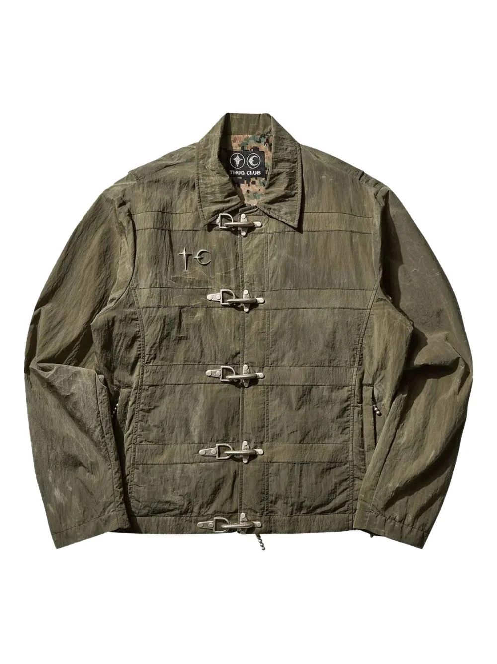 toggle-fastening shirt jacket Highlights - Olive green - Panelled design - Toggle fastening - Long sleeves - Side zip-fastening pockets - Straight hem Imported Composition Outer: Nylon 100% Lining: Polyester 100% Washing instructions Read Manufacturer Guidelines