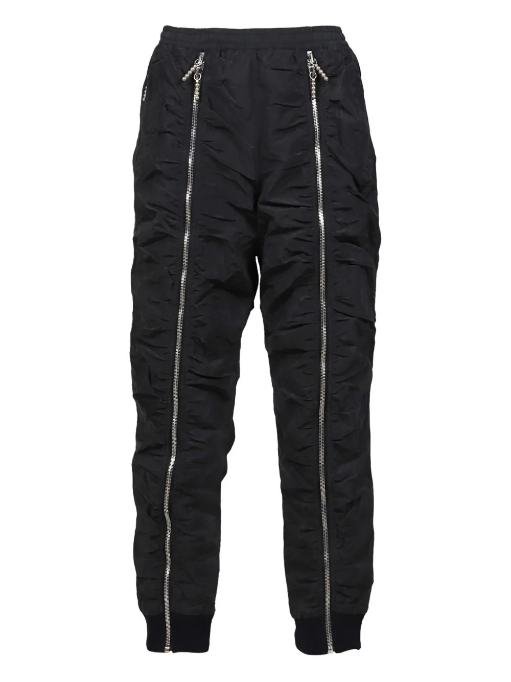 decorative-zip trousers Highlights - Black - Elasticated waistband - Two side slit pockets - Elasticated ankles Imported Composition Outer: Recycled Nylon 100% Lining: Polyester 100%