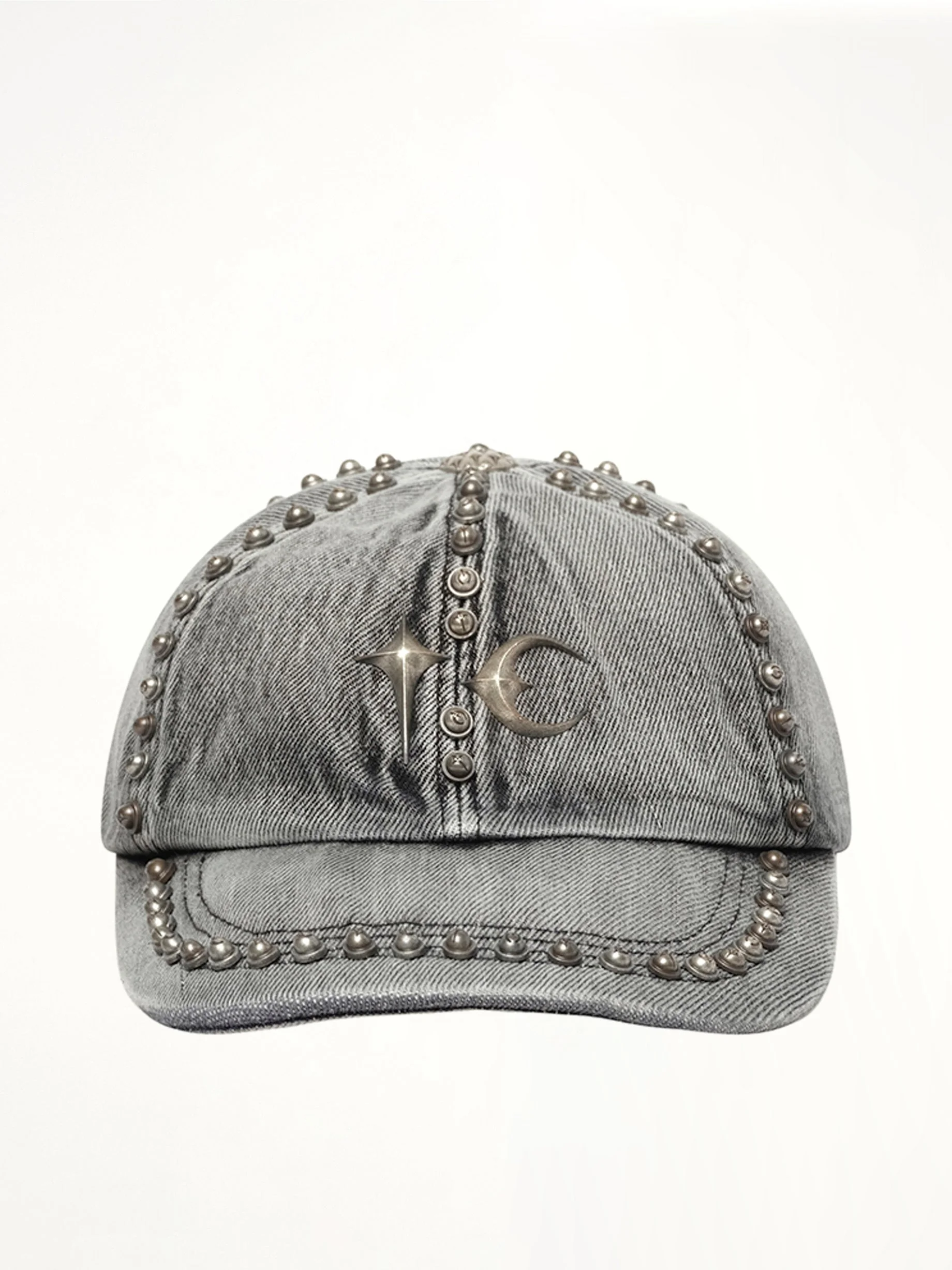 Studded Denim Cap in Black