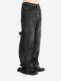distressed wide-leg jeans Highlights - Black - Cotton - Denim - Distressed finish - Button fly fastening - Belt loops - Classic five pockets - Wide leg Imported Composition Cotton 100%
