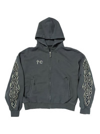 Leather Flame zip-up sweatshirt Highlights - Grey - Flame motif - Zip fastening - Hooded - Front pockets - Distressed effect Imported Composition Cotton 100%, Calf Leather 100% Washing instructions Read Manufacturer Guidelines