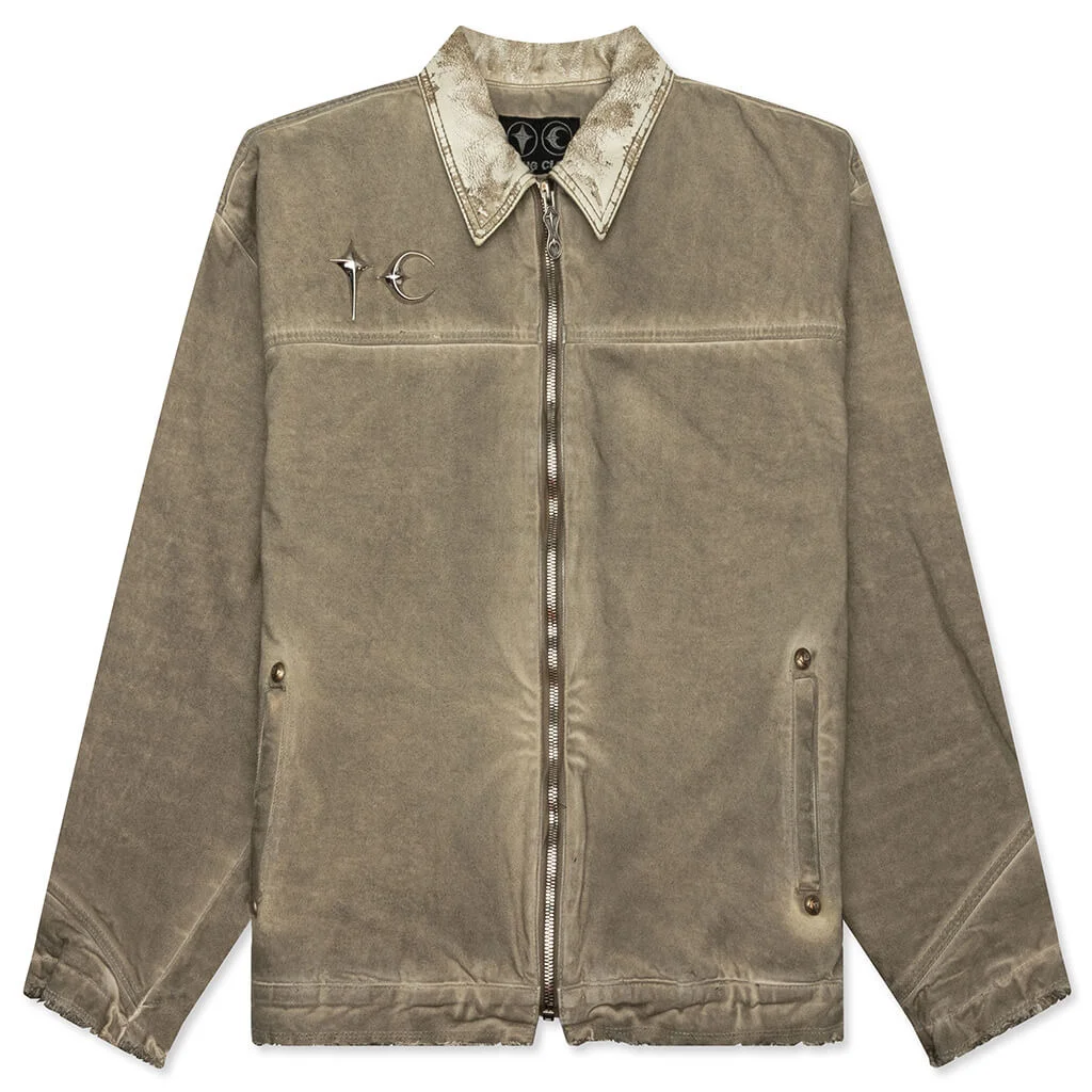 Elevate your outerwear rotation with the Washed Work Jacket from Thug Club. Constructed from cotton, this jacket is paired with a leather-textured collar and lined with polyester for comfort. Featuring a full-zip closure, front pockets, inner pocket, and adjustable waist tabs. Custom hardware and the signature Thug Club emblem add a touch of authenticity. - 100% Cotton - Lining: 100% Polyester - Lunar dyeing wash - Leather-textured collar - Zip closure - Thug Club emblem - Custom hardware - Front pockets - Inner pocket - Adjustable waist tabs - Style No: TC25JK3601